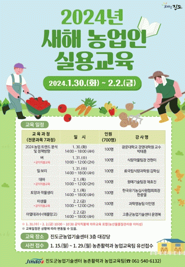 Áøµµ±º ³ó¾÷±â¼ú¼¾ÅÍ ¹Ú°èõ ¼ÒÀåÀº ¡°»õÇØ ³ó¾÷ÀÎ ½Ç¿ë±³À°À» ÅëÇØ º¯ÈÇÏ´Â ³ó¾÷Á¤Ã¥°ú »õ·Î¿î ³ó¾÷±â¼ú Á¤º¸¸¦ ÅëÇØ ¿Ã ÇÑÇØ ¼º°øÀûÀÎ ³ó»ç¸¦ ¼³°èÇÏ±æ ¹Ù¶õ´Ù¡±¸ç ¡°¾ÕÀ¸·Îµµ Áøµµ±ºÀÇ ³ó¾÷ °æÀï·Â Á¦°í¿Í ¹Ì·¡ ³ó¾÷À» À̲ø ³ó¾÷ÀÎÀÇ ¿ª·® °È¸¦ À§ÇØ ´Ù¾çÇÑ ±³À°À» ½Ç½ÃÇϰڴ١±°í ¸»Çß´Ù.