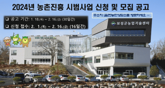 »ç¾÷ ½ÅûÀº ÁÖ¼ÒÁö À¾¸é ³ó¹Î»ó´ã¼Ò¸¦ ÅëÇØ ÁøÇàµÇ¸ç, ÀÚ¼¼ÇÑ ³»¿ëÀº º¸¼º±º ´©¸®Áý ¶Ç´Â ´ëÇ¥ÀüÈ(061-850-5722)·Î È®ÀÎÇÒ ¼ö ÀÖ´Ù.