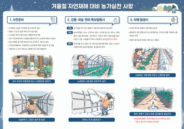ƯÈ÷ Æø¼³°ú ÇÑÆÄ µî¿¡ ´ëºñÇÑ ´Ü°èº° ´ëÀÀ ¿ä·É, ³óÀÛ¹°°ú ³óÃà»ê½Ã¼³¹° °ü¸®, °í·É³ó µî Ãë¾à³ó¾÷ÀÎ ¾ß¿ÜȰµ¿ ÀÚÁ¦·Î ÀÀ±Þ´ëó ¿ä·ÉÀ» ³ó¾÷Àο¡°Ô ÁýÁß È«º¸Çϰí ÀÖ´Ù.