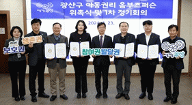 ±¤»ê±¸´Â À̳¯ ·ù¸® º¯È£»ç, ¼Õ¸íµ¿ ±¤ÁÖ¿©ÀÚ´ëÇб³ »çȸº¹ÁöÇаú ±³¼ö, ÃÖ¿µÃ¶ ±¤Áֽà ¾Æµ¿º¸È£Àü¹®±â°ü °üÀå, ±èµ¿°ü ¼¼À̺ê´õÄ¥µå·± ±¤Á־Ƶ¿±Ç¸®¼¾ÅÍÀå µî ¹ý·ü, ±³À°, À뱂 µî ºÐ¾ß¸¦ ´ëÇ¥ÇÑ 4¸íÀ» ±¤»ê±¸ÀÇ Ã¹ ¾Æµ¿±Ç¸® ¿ÈºÎÁîÆÛ½¼À¸·Î À§ÃËÇß´Ù.