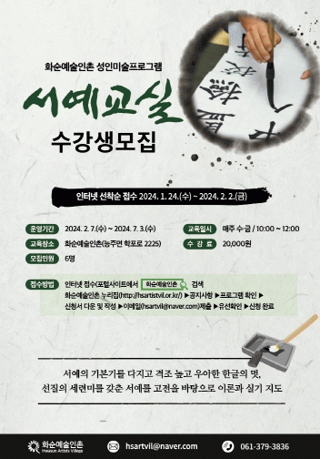 ¼ö°»ýµéÀº ¼¿¹ÀÇ ±âº»±â¸¦ ´ÙÁö°í °ÝÁ¶ ³ôÀº Çѱ۰ú Çѹ®ÀÇ ¸ÚÀ» ¾Ë¾Æº¸°í ±Û¾¾ÀÇ ÇüÅÂ, ±ÕÇü, Å©±â¿Í ¼±ÀÇ µÎ²² µîÀ» ´Ù¾çÇÏ°Ô Á¶ÇÕÇÏ¿© ¹ÌÀû °¨°¢À» Ç¥ÇöÇÏ´Â ¿¹¼ú ÀÛǰȰµ¿À» ÁøÇàÇÒ ¿¹Á¤ÀÌ´Ù.
