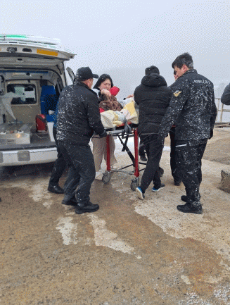 Á¶µµ119 ±¸±Þ´ë¿øÀÌ Áï½Ã ½ÉÆó¼Ò»ý¼úÀ» ½Ç½ÃÇß°í ÀÇ»ç¿Í °£È£»ç°¡ µ¿ÇàÇÏ¸ç ¾î·ùÆ÷Ç×À» Ãâ¹ß, ÁøµµÇ׿¡ µµÂøÇØ 119±¸±Þ´ë¿¡ ȯÀÚ¸¦ ÀΰèÇß´Ù.