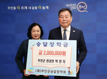 À̳¯ ±âŹ½Ä¿¡¼ ¹Ú¿¬ÀÚ ¾¾´Â ¡°Áö¿ªÀÎÀç ¾ç¼º¿¡ ¾ÕÀå¼°í ÀÖ´Â ½Â´ÞÀåÇÐȸ¿¡ µµ¿òÀÌ µÇ±â¸¦ ¹Ù¶ó´Â ¸¶À½À¸·Î ÀåÇбÝÀ¸·Î ±âŹÇÏ°Ô µÆ´Ù¡±¶ó¸ç, ¡°¹«¾È±ºÀÇ ¹Ì·¡¸¦ À̲ø¾î°¥ ÇлýµéÀÌ ²ÞÀ» ÆîÄ¡´Â µ¥ Á¶±ÝÀ̳ª¸¶ µµ¿òÀÌ µÇ±â¸¦ ¹Ù¶õ´Ù¡±°í ÀüÇß´Ù.