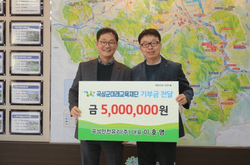 °î¼º¾ÈÀüÀ¯¸®(ÁÖ) ÀÌÈ£¿µ ´ëÇ¥´Â °î¼º±º¹Ì·¡±³À°Àç´Ü¿¡ 5¹é¸¸ ¿øÀ» ±âŹ, °î¼º¿¡¼ ±â¾÷À» ¿î¿µÇÏ´Â ´ëÇ¥·Î¼ Áö¿ª»çȸ ¾ÆÀ̵éÀÌ ´õ ¸¹Àº ±³À° ±âȸ¸¦ °¡Áú ¼ö ÀÖµµ·Ï Ã¥ÀÓÀ» ´Ù Çϰí½Í´Ù°í ÀüÇß´Ù. °î¼º¾ÈÀüÀ¯¸®(ÁÖ)´Â °î¼º±º »ï±â¸é¿¡ À§Ä¡ÇÑ ¾ÈÀüÀ¯¸® Á¦Á¶¾÷ü·Î Æò¼Ò Áö¿ª»çȸ ¹ßÀüÀ» À§ÇÑ ºÀ»ç¸¦ ½ÇõÇÏ¸é¼ Áö¿ªÁֹε鿡°Ô ³ôÀº ½Å·Ú¸¦ ¹Þ°í ÀÖ´Ù.