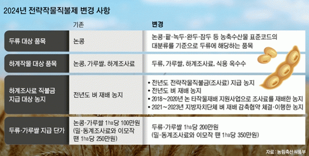 ¿ÃÇØºÎÅÍ´Â ¡®Àü·«ÀÛ¹°Á÷ºÒÁ¦¡¯¿¡ ¼Ö¼±Çß´ø ³ó°¡°¡ ÇÇÇØ°¡ ¾øµµ·Ï ÇϰèÀÛ¹° Áö¿øÀ» È®´ëÇØ ½Ä¿ë¿Á¼ö¼ö ½Å±Ô Ãß°¡(ha´ç 100¸¸ ¿ø), ±âÁ¸ ³íÄáÀº(ha´ç 100¸¸ ¿ø) ³ìµÎ, ÆÏ µîÀ» Æ÷ÇÔÇÑ µÎ·ù(§³´ç 200¿ø)·Î ǰ¸ñÀ» È®´ëÇϰí, Áö±Þ´Ü°¡¸¦ 100¸¸ ¿ø ÀλóÇß´Ù.