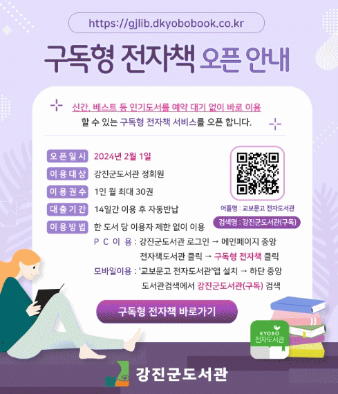 À̹ø¿¡ ½Ç½ÃÇÏ´Â ±¸µ¶Çü ÀüÀÚÃ¥ ¼ºñ½º´Â ±âÁ¸ °Áø±ºµµ¼°üÀÇ ¼ÒÀåÇü ÀüÀÚÃ¥ ¼ºñ½º¿Í ´Þ¸® ½Å°£ ¹× º£½ºÆ®¼¿·¯ µî Àα⵵¼¸¦ ¿¹¾à ´ë±â ¾øÀÌ ¹Ù·Î ÀÌ¿ëÇÒ ¼ö ÀÖÀ¸¸ç, 1ÀÎ ÃÖ´ë ¿ù 30±Ç±îÁö ´ëÃâÀÌ °¡´ÉÇÏ´Ù. 14Àϰ£ ÀÌ¿ë ÈÄ ´ëÃâµÈ ÀüÀÚÃ¥Àº º°µµÀÇ ÀýÂ÷¾øÀÌ ÀÚµ¿ ¹Ý³³µÈ´Ù.