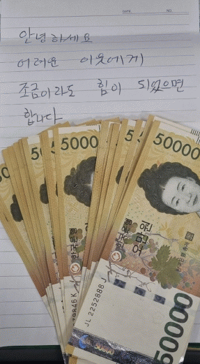 È®Àΰá°ú ¡°¾È³çÇϼ¼¿ä ¾î·Á¿î ÀÌ¿ô¿¡°Ô Á¶±ÝÀÌ¶óµµ ÈûÀÌ µÆÀ¸¸é ÇÕ´Ï´Ù¡±¶ó´Â ¼ÕÆíÁö¿Í ÇÔ²² 120¸¸ ¿øÀÇ Çö±ÝÀÌ µé¾îÀÖ¾ú´Ù.