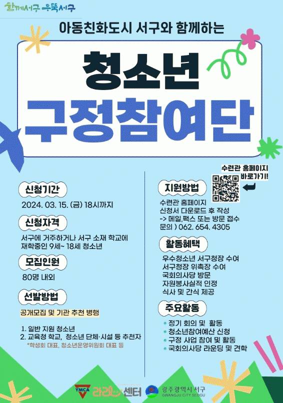 ±¸Á¤Âü¿©´Ü ½ÅûÀº ¿À´Â 3¿ù15ÀϱîÁö ¼±¸Ã» ȨÆäÀÌÁö³ª ¼±¸Ã»¼Ò³â¼ö·Ã°ü¡®¶ó¶ó¼¾ÅÍ¡¯È¨ÆäÀÌÁö¿¡¼ ½Åû¼¸¦ ´Ù¿î¹Þ¾Æ À̸ÞÀÏ ¶Ç´Â ¼±¸Ã» ¾Æµ¿Ã»¼Ò³â°ú·Î ¹æ¹® Á¢¼öÇÏ¸é µÈ´Ù.