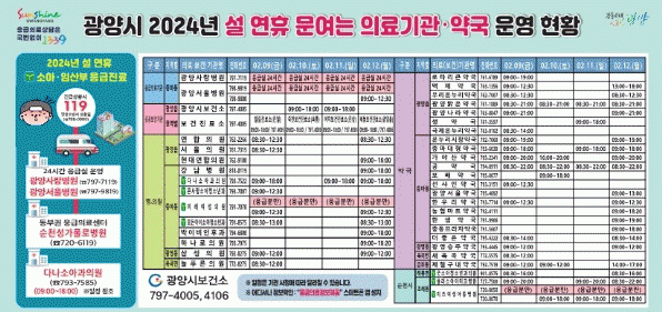 ¼³ ¿¬ÈÞ ¹® ¿©´Â ÀÇ·á±â°ü°ú ¾à±¹ ÇöȲÀº ±¤¾ç½Ã ȨÆäÀÌÁö¿Í SNS, 129 º¸°Çº¹ÁöÄݼ¾Å͸¦ ÅëÇØ È®ÀÎÇÒ ¼ö ÀÖÀ¸¸ç, ½º¸¶Æ®Æù ¾ÖÇø®ÄÉÀÌ¼Ç ¡®ÀÀ±ÞÀÇ·áÁ¤º¸Á¦°ø¡¯¿¡¼µµ ³» ÁÖº¯ º´ÀÇ¿ø, ¾à±¹ Á¤º¸¿Í »óȲº° ÀÀ±Þóġ ¿ä·É µî ´Ù¾çÇÑ ÀÇ·á Á¤º¸¸¦ È®ÀÎÇÒ ¼ö ÀÖ´Ù.