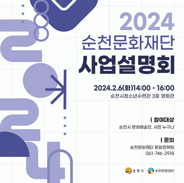 À̹ø »ç¾÷¼³¸íȸ´Â 2023³â ¼øÃµ¹®ÈÀç´Ü 20°³ »ç¾÷¿¡ ´ëÇÑ ¼º°ú¸¦ °øÀ¯Çϰí, 2024³â ¼øÃµ¹®ÈÀç´Ü¿¡¼ ÁøÇà ¿¹Á¤ÀÎ ¡ã ¹®ÈÁ¤Ã¥ÆÀ 7°³ »ç¾÷ ¡ã ¿¹¼úÁøÈïÆÀ 8°³ »ç¾÷ ¡ã ÀÚ¿ø¿î¿µÆÀ 4°³ »ç¾÷ ¡ã °æ¿µÁö¿øÆÀ 2°³ »ç¾÷ µî ÃÑ 21°³ ¼¼ºÎ»ç¾÷À» ¼Ò°³ÇÑ´Ù.