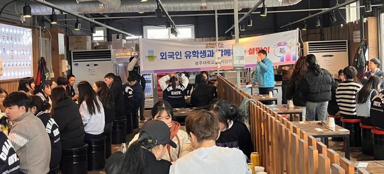 ±¤ÁÖ´ë ±¹Á¦Çù·Âó´Â 1Àϰú 2ÀÏ, 5ÀÏ ¿Ü±¹ÀÎ À¯Çлý 200¿© ¸í°ú ÇÔ²² Çб³ Àα٠À½½ÄÁ¡¿¡¼ Çѱ¹½Ä ¹ÙºñÅ¥ µîÀ» Áñ±â¸ç Çѱ¹ ¸íÀý¿¡ ´ëÇÑ ´ö´ã°ú »õÇØÀλ縦 ³ª´³´Ù. ¶Ç ¾à°ú µîÀ» Àü´ÞÇϸç À¯ÇлýµéÀÇ »ç±â¸¦ µ¶·ÁÇØ Ÿ±¹¼ º¸³»´Â ¸íÀýÀÇ ¿Ü·Î¿òÀ» ´Þ·¡ÁÖ´Â ¶æ±íÀº ½Ã°£À» º¸³Â´Ù.