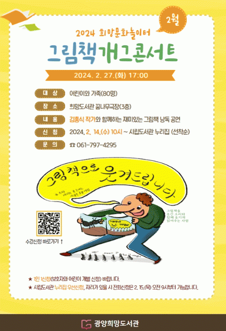 Èñ¸Áµµ¼°üÀº ¿ÃÇØ ù Èñ¸Á¹®È³îÀÌÅÍ·Î ¡®±×¸²Ã¥ °³±×ÄܼƮ¡¯¸¦ ¸¶·ÃÇØ ±èÈï½Ä ±×¸²Ã¥ ÀÛ°¡ÀÇ Àç¹ÌÀÖ´Â ±×¸²Ã¥ ³¶µ¶ °ø¿¬À» ÁøÇàÇÑ´Ù.