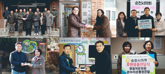 ¼øÃµ½ÃÀÇȸ ÀÇ¿øµéÀº Áö³ 6ÀÏ ´Ù¼Ø°øµ¿Ã¼, 95¿¬´ëÁ¦5´ë´ë, Á¶·ÊÁ¾ÇÕº¹Áö°ü µî 14°³¼Ò¸¦ ¹æ¹®ÇØ ¸íÀý ¿¬ÈÞ¿¡µµ ¾î·Á¿î ÀÌ¿ô µ¹º½°ú ±¹Å乿À§¸¦ À§ÇØ Çå½ÅÇÏ´Â À̵éÀÇ ³ë°í¿¡ °¨»çÀÇ ¸¶À½À» ÀüÇϸç À§¹®Ç°À» Àü´ÞÇß´Ù.
