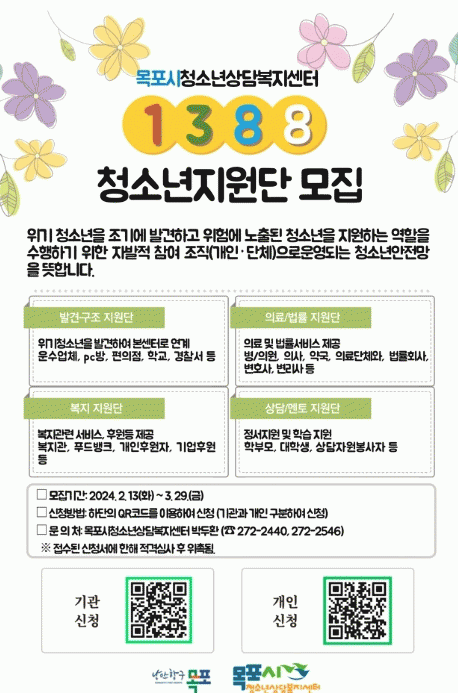¡®1388û¼Ò³âÁö¿ø´Ü¡¯Àº û¼Ò³â¾ÈÀü¸ÁÀÇ ÀϺημ, À§±âû¼Ò³âÀ» Á¶±â¿¡ ¹ß°ßÇϰí À§Çè¿¡ ³ëÃâµÈ û¼Ò³â°ú À§±âû¼Ò³â¿¡°Ô À¯¡¤¹«»óÀÇ ÀÚ¿øÀ» Áö¿øÇϱâ À§ÇÑ ÀÚ¹ßÀûÀÎ ¹Î°£ Âü¿©Á¶Á÷ÀÌ´Ù.