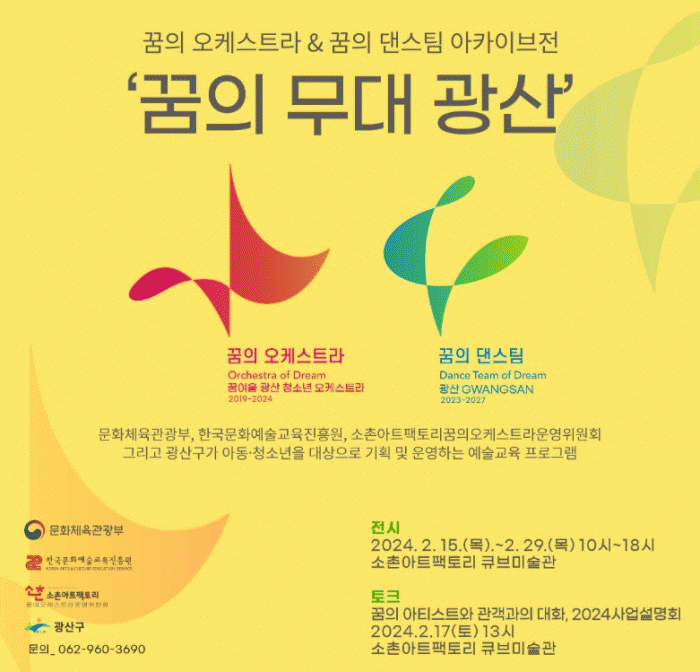 ±¤»ê±¸´Â ¹®ÈüÀ°°ü±¤ºÎ°¡ ÁÖÃÖÇϰí Çѱ¹¹®È¿¹¼ú±³À°ÁøÈï¿øÀÌ ÁÖ°üÇÏ´Â ²ÞÀÇ ¿ÀÄɽºÆ®¶ó?²ÞÀÇ ´í½ºÆÀ ¿î¿µ »ç¾÷¿¡ ¼±Á¤µÅ Áö¿ª ¾Æµ¿?û¼Ò³âÀÌ À½¾Ç°ú ÃãÀ» ±â¹ÝÀ¸·Î ¹®È¿¹¼ú Ȱµ¿À» ÆîÄ¡¸ç °Ç°ÇÏ°Ô ¼ºÀåÇϵµ·Ï µ½´Â »ç¾÷À» ÁøÇàÇØ ¿Ô´Ù.