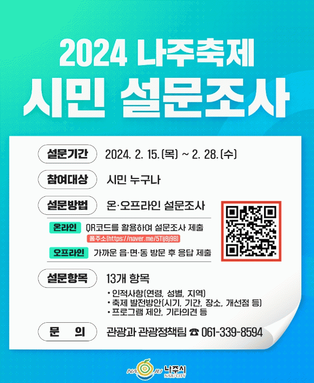 ½Ã´Â ¼³¹®Á¶»ç °á°ú¸¦ ³ªÁֽà ÃàÁ¦ÃßÁøÀ§¿øÈ¸¿¡ Àü´ÞÇØ ¡®2024 ³ªÁÖÃàÁ¦¡¯ ±âº»°èȹ ¼ö¸³ ¹× ¹æÇâ ¼³Á¤ÀÇ ±âÃÊÀÚ·á·Î Ȱ¿ëÇÒ °èȹÀÌ´Ù.
