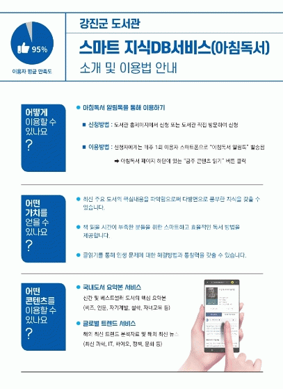 À̸¦ ÅëÇØ ½Ã°£°ú Àå¼Ò¿¡ ±¸¾Ö¹ÞÁö ¾Ê°í ´Ù¾çÇÑ µµ¼¿Í ÃֽŠƮ·»µå¸¦ Á¢ÇÒ ±âȸ¸¦ Á¦°øÇϰí, ÃâÅð±Ù ½Ã¿¡µµ ÀÌ¿ë °¡´ÉÇÑ ¿Àµð¿ÀºÏ ±â´Éµµ žÀçÇØ, ¹Ù»Û ÀÏ»ó ¼Ó¿¡¼µµ Ȱ¿ëÇÒ ¼ö ÀÖ´Â µ¶¼ ¹æ¹ýÀ» Á¦½ÃÇÑ´Ù´Â ¹æÄ§ÀÌ´Ù.
