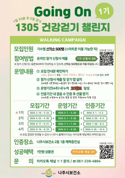 ³ªÁֽà °ü°èÀÚ´Â ¡°¿ÃÇØ ÃÑ 4ȸÀÇ °È±â 縰Áö¸¦ ½Ç½ÃÇÒ ¿¹Á¤ÀÌ´Ù¡±¶ó¸ç ¡°Áö¼ÓÀûÀÎ °Ç°°È±â ½Çõ À¯µµ·Î »îÀÇ Áú Çâ»ó°ú ºñ¸¸ ¿¹¹æ¿¡ ±â¿©Çϰڴ١±°í ¹àÇû´Ù.