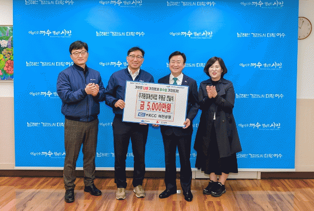 Á¤±â¸í ¿©¼ö½ÃÀåÀº ¡°¸Å³â »çȸ°øÇå Ȱµ¿À» ÅëÇØ ³ª´® ¹®È È®»ê¿¡ ³ë·ÂÇØ ÁֽŠ(ÁÖ)KCC ¿©Ãµ°øÀå¿¡ °¨»ç¸¦ µå¸°´Ù¡±¸ç ¡°ÈÄ¿ø±ÝÀº º¹ÁöÀ§±â°¡±¸°¡ Á» ´õ ¾È¶ôÇÑ È¯°æ¿¡¼ »ýȰÇÏ½Ç ¼ö ÀÖ´Â ¿©°Ç ¸¶·Ã¿¡ ¶æ±í°Ô »ç¿ëÇϰڴ١±°í ¸»Çß´Ù.