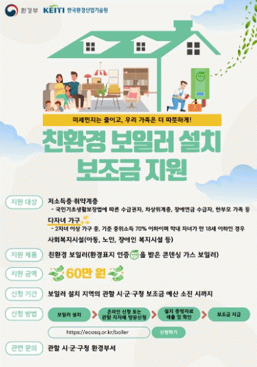 ÀÌ¿¡ µû¶ó µ¿±¸´Â ģȯ°æ º¸ÀÏ·¯ ¼³Ä¡¡¤±³Ã¼ Áö¿øÀ» ¿øÇÏ´Â Àú¼ÒµæÃþ°ú ´ÙÀÚ³à °¡±¸(ÁßÀ§¼Òµæ 70% ÀÌÇÏ) µîÀ» ´ë»óÀ¸·Î ¿¹»ê Çѵµ ³»¿¡¼ °¡±¸´ç 60¸¸ ¿øÀ» Áö¿øÇÒ °èȹÀÌ´Ù.