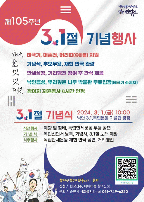 Á¦105Áֳ⠻ïÀÏÀý ±â³äÇà»ç´Â dz¹°³îÀ̸¦ ½ÃÀÛÀ¸·Î µ¶¸³¸¸¼¼ Ã߸𹫿ë, µ¶¸³¼±¾ð¼ ³¶µ¶, ±â³ä»ç, 3.1Àý ³ë·¡ Á¦Ã¢, ±×³¯ÀÇ ÇÔ¼ºÀ» ÀçÇöÇÑ ¿¬±Ø°ø¿¬°ú ¸¸¼¼»ï⠰Ÿ®ÇàÁøÀ¸·Î ÁøÇàµÈ´Ù.