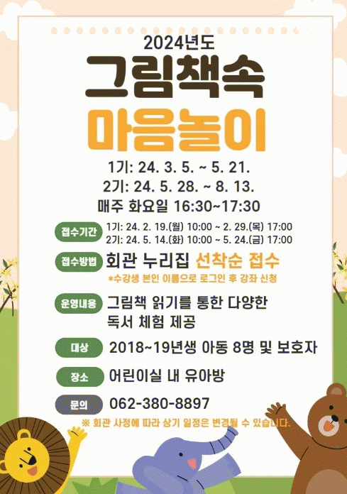 ±âŸ ÀÚ¼¼ÇÑ ³»¿ëÀº ±¤ÁÖÇлý±³À°¹®Èȸ°ü ¹®ÇåÁ¤º¸°ú ¾î¸°À̽ǷΠ¹®ÀÇÇÏ¸é µÈ´Ù.