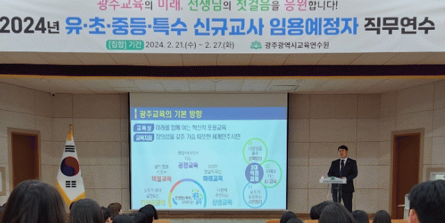 ÀÌÁ¤¼± ±³À°°¨Àº ¡°±¤ÁÖ±³À°ÀÇ ÇÑ °¡Á·ÀÌ µÈ ½Å±Ô ¼±»ý´ÔµéÀ» Áø½ÉÀ¸·Î ȯ¿µÇÑ´Ù¡±¸ç ¡°¾ÈÁ¤ÀûÀÎ Çб³ ÀûÀÀ°ú ±³Á÷ ¿ª·® °È¸¦ À§ÇØ ¸¶·ÃµÈ À̹ø ¿¬¼ö¸¦ ÅëÇØ ¿ì¸® ¾ÆÀ̵éÀÌ ¹Ù¶ó´Â ²ÞÀ» ÀÌ·ê ¼ö ÀÖ°Ô ÇÔ²² ³ë·ÂÇØ ÁÖ±æ ¹Ù¶õ´Ù¡°°í ¸»Çß´Ù.