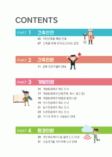 ±ºÀº À̸¦ À§ÇØ ¿ÃÇØ 1¿ùºÎÅÍ ÀÎÇã°¡ ÀÚ·á¿¡ ´ëÇÑ ´ë»ó°ú ÁÖ¿ä ³»¿ëÀ» ÃëÇÕÇÑ ÈÄ, °ü·Ã ¹ý·É ¹× Á¶·Ê µîÀ» °ËÅä ºÐ¼®ÇÏ¿© À§¹Ý°ÇÃ๰, °ÇÃ๰ ÇØÃ¼, °ÇÃà ÀÎÇã°¡ ÀýÂ÷, °³¹ßÇàÀ§Çã°¡, »êÁö¡¤³óÁö Àü¿ë Çã°¡, °³ÀÎ Çϼö󸮽ü³ ¼³Ä¡ µîÀÇ ³»¿ëÀ» ÇÑ´«¿¡ ¾Ë¾Æº¼ ¼ö ÀÖµµ·Ï Çß´Ù.