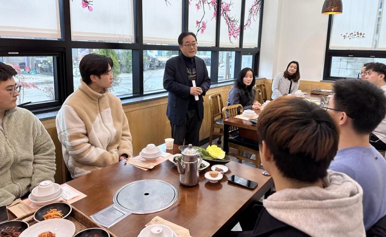 À̳¯ °£´ãȸ¿¡´Â È£³²´ëÇб³ ´ëÇпø ±è´ö¸ð ¿øÀå, ±¹Á¦±³·ùó ¼Õ¿ÏÀÌ Ã³Àå, 2024Çг⵵ 1Çб⠹ڻç°úÁ¤ ¿Ü±¹ÀÎ Á¹¾÷»ý°ú Çкθð µî 14¸íÀÌ Âü¼®ÇßÀ¸¸ç, ´ëÇпø ¹Ú»ç°úÁ¤ Á¹¾÷ ¼Ò°¨°ú ¾ÕÀ¸·ÎÀÇ °èȹ µî¿¡ ´ëÇØ À̾߱⸦ ³ª´³´Ù.