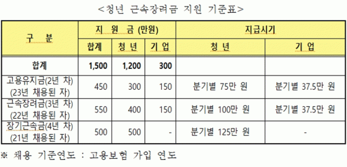 ¼±Á¤ ±â¾÷¿¡´Â ¡â2~3³â Â÷ 150¸¸ ¿øÀ» Áö¿øÇϰí, û³â Ãë¾÷ÀÚÀÇ °æ¿ì ¡â2³â Â÷´Â ¿¬ 300¸¸ ¿ø ¡â3³â Â÷ 400¸¸ ¿ø ¡â4³â Â÷ 500¸¸ ¿øÀ» Áö¿øÇÑ´Ù.