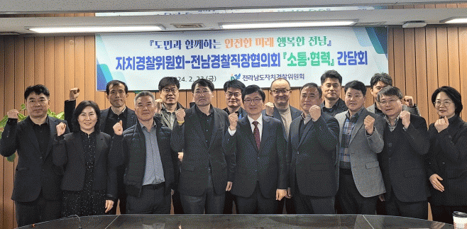 ¼°È£ Àü³²°æÂûÁ÷ÀåÇùÀÇȸ ´ëÇ¥´Â ¡°°£´ãȸ¿¡¼ ³íÀÇµÈ ³»¿ëÀÌ ÃæºÐÈ÷ ¹Ý¿µµÅ °³¼±µÇµµ·Ï Àû±Ø ÇùÁ¶ÇØ´Þ¶ó¡±¸ç ¡°ÀÚÄ¡°æÂû »ç¹«¸¦ ºñ·ÔÇØ ¸ÃÀº ÀÓ¹«¸¦ ¼º½ÇÈ÷ ¼öÇàÇØ ¾ÈÀüÇÑ Ä¡¾È»óŰ¡ À¯ÁöµÇµµ·Ï Çϰڴ١±°í ¹àÇû´Ù.