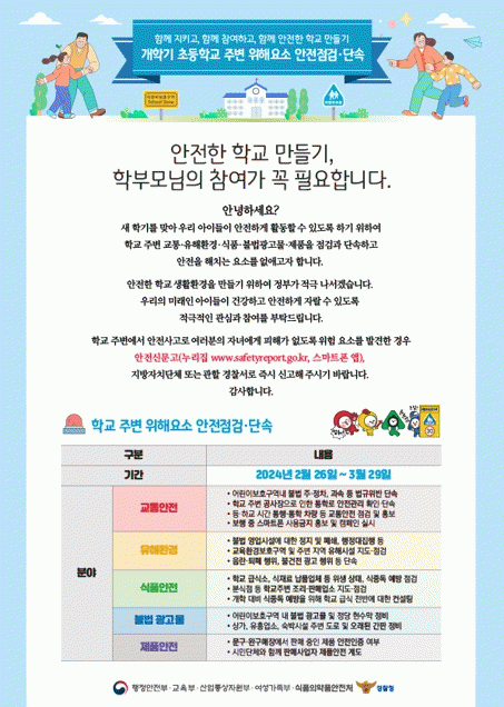 ºÐ¾ßº° ÁÖ¿ä Á¡°Ë ³»¿ëÀ¸·Î´Â ±³Åë¾ÈÀü ºÐ¾ß ¡ã¾î¸°À̺¸È£±¸¿ª³» ºÒ¹ý ÁÖ¡¤Á¤Â÷, °ú¼Ó µî ¹ý±ÔÀ§¹Ý ´Ü¼Ó ¡ãÇб³ ÁÖº¯ °ø»çÀåÀ¸·Î ÀÎÇÑ ÅëÇзΠ¾ÈÀü°ü¸® È®ÀΡ¤´Ü¼Ó ¡ãµîÇϱ³ ½Ã°£ ÅëÇࡤÅëÇÐ Â÷·® µî ±³Åë¾ÈÀü Á¡°Ë ¹× È«º¸ ¡ãº¸Çà Áß ½º¸¶Æ®Æù »ç¿ë±ÝÁö È«º¸ ¹× Ä·ÆäÀÎ ½Ç½Ã µîÀÌ´Ù.