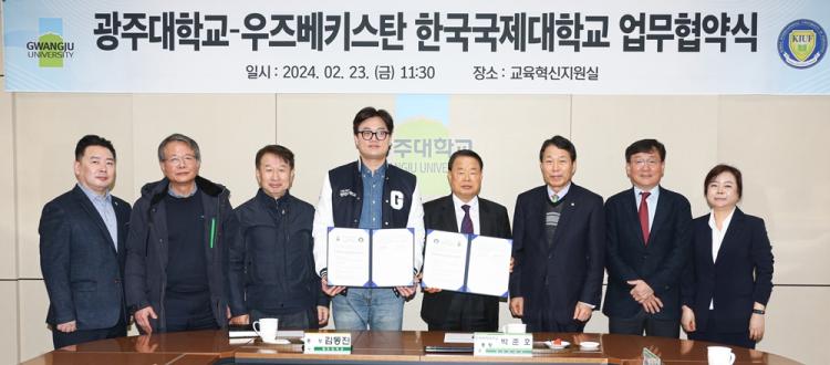 [ÅåÅå´º½º]±¤ÁÖ´ëÇб³(ÃÑÀå ±èµ¿Áø)´Â 23ÀÏ ±³³» ÇàÁ¤°ü 6Ãþ ±³À°Çõ½ÅÁö¿ø½Ç¿¡¼ ¿ìÁŰ½ºÅº Çѱ¹±¹Á¦´ëÇб³(ÃÑÀå ¹ÚÁØÈ£)¿Í 3+1 º¹¼öÇÐÀ§ °úÁ¤¿¡ ´ëÇÑ ¾÷¹«Çù¾àÀ» ü°áÇß´Ù.