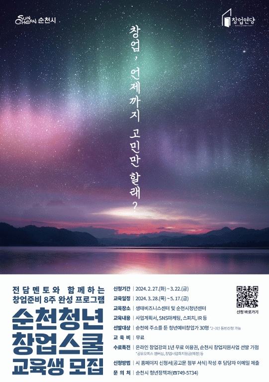 ¼øÃµÃ»³ââ¾÷½ºÄðÀº ¿¹ºñâ¾÷ÀÚµéÀÌ ²À ¾Ë¾Æ¾ß ÇÒ Ã¢¾÷±âÃʺÎÅÍ Á¤ºÎÁö¿ø±ÝÀ» ¹Þ±â À§ÇÑ »ç¾÷°èȹ¼ ¿Ï¼º±îÁö Àü´ã¸àÅä 1:1 ÄÚĪÀÌ ÀÌ·ç¾îÁö´Â â¾÷¿¬´ç ´ëÇ¥ ÇÁ·Î±×·¥ÀÌ´Ù.