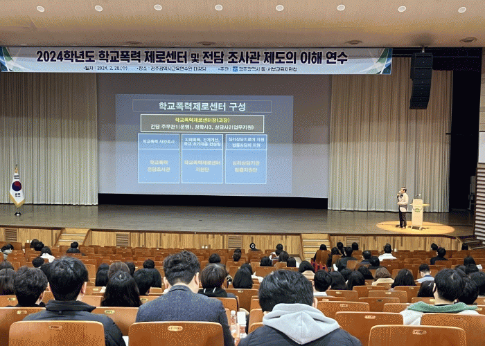 ÇÑÆí ±¤ÁÖµ¿¡¤¼ºÎ±³À°Áö¿øÃ»Àº 2¿ù 28ÀÏ Çб³ ÇöÀå¿¡¼ Çб³Æø·ÂÁ¦·Î¼¾ÅÍ ¿î¿µ¿¡ ´ëÇÑ ÀÌÇØ¸¦ µ½±â À§ÇØ Çб³ ±³°¨ ¹× Çлý»ýȰºÎÀå ´ë»ó ¿¬¼ö¸¦ ½Ç½ÃÇß´Ù. À̸¦ ÅëÇØ Á¦·Î¼¾ÅÍ ±¸Ãà ÇöȲ ¹× ¿î¿µ »ç¾÷¿¡ ´ëÇÑ ¾È³»¿Í Çб³Æø·Â »ç¾È 󸮿¡ ´ëÇÑ ÁÖ¿ä °³Á¤ »çÇ×À» ¾È³»Çß´Ù.