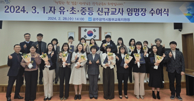 µ¿¡¤¼ºÎ±³À°Áö¿øÃ»¿¡ µû¸£¸é °¢ ±³À°Áö¿øÃ» ´ë°´ç¿¡¼ ÀÌ·ïÁø À̹ø ÀÓ¸íÀå ¼ö¿©½Ä¿¡¼ ½Å±Ô ±³»çµéÀº ±³À°°ø¹«¿øÀ¸·Î¼ ¼º½ÇÇÏ°Ô ÀÓ¹«¸¦ ¼º½ÇÈ÷ ¼öÇàÇÒ °ÍÀ» ´ÙÁüÇß´Ù. ÀÌ¾î °øÁ÷Àڷμ û·ÅÇÑ ¾÷¹«Åµµ¿Í »ýȰÀ» ´ÙÁüÇϴ û·Å¼±¼°¡ ÀÌ·ïÁ³´Ù.