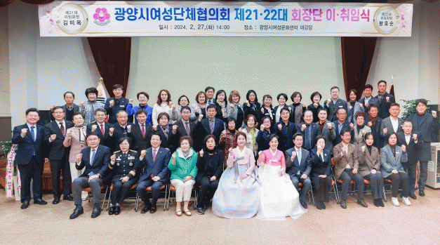 À̳¯ Çà»ç¿¡´Â Á¤ÀÎÈ ±¤¾ç½ÃÀå, ¼¿µ¹è ±¤¾ç½ÃÀÇȸ ÀÇÀå ¹× µµ¡¤½ÃÀÇ¿ø, Á¤°¿Á ¼Ò¹æ¼ÀåÀ» ºñ·ÔÇÑ ¿©·¯ ±â°ü´ÜüÀå, ¿©¼º´Üü ȸ¿ø µî 100¿© ¸íÀÌ Âü¼®ÇÑ °¡¿îµ¥ Á¦21´ë ±è¹Ì¿Á ȸÀåÀÌ ÀÌÀÓÇϰí, Á¦22´ë ȸÀåÀ¸·Î Ȳȣ¼ø ȸÀåÀÌ ÃëÀÓÇß´Ù.