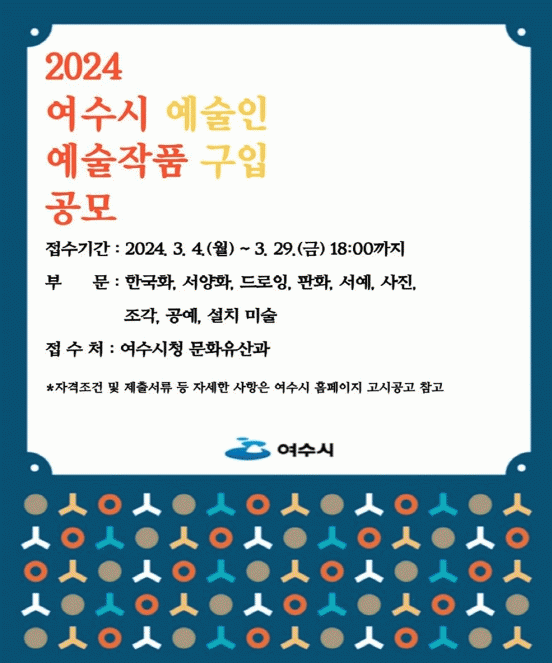ÀÀ¸ð ÀÚ°ÝÀº °ø°íÀÏ 26ÀÏ ±âÁØ ¿©¼ö½Ã¿¡ ÁÖ¼Ò¸¦ µÎ°í Áö¿ª¿¡¼ Ȱµ¿Çϰí ÀÖ´Â ¿¹¼úÀÎÀ¸·Î °³ÀÎÀü 2ȸ ÀÌ»óÀÇ °³ÃÖ ½ÇÀû, ±âȹÀü ¶Ç´Â ±×·ìÀü 3ȸ ÀÌ»ó Ãâǰ °æ·Â, ÃÖ±Ù 3³â À̳» Àü±¹ ±Ô¸ð ¹Ì¼ú °ø¸ðÀü¿¡¼ 3ȸ ÀÌ»ó ÀÔ»ó µî Çϳª ÀÌ»óÀÇ °æ·ÂÀÌ ÀÖ¾î¾ß ÇÑ´Ù.
