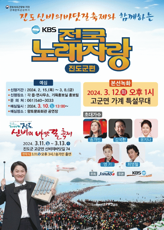 Áøµµ±º °ü°èÀÚ´Â ¡°Áøµµ ½ÅºñÀÇ ¹Ù´å±æ ÃàÁ¦¿Í ÇÔ²²ÇÏ´Â KBS Àü±¹³ë·¡ÀÚ¶û¿¡ ±º¹Î ¿©·¯ºÐÀÇ ¸¹Àº °ü½É°ú Âü¿©¸¦ ¹Ù¶õ´Ù¡±¸ç ¡°Áøµµ±º¹Î°ú °ü±¤°´µéÀÌ ÇÔ²² Áñ±æ ¼ö ÀÖ´Â KBS Àü±¹³ë·¡ÀÚ¶û°ú Áøµµ ½ÅºñÀÇ ¹Ù´å±æ ÃàÁ¦ÀÇ ¼º°øÀûÀÎ °³ÃÖ¸¦ À§ÇØ ÃÖ¼±À» ´ÙÇϰڴ١±°í ¸»Çß´Ù.