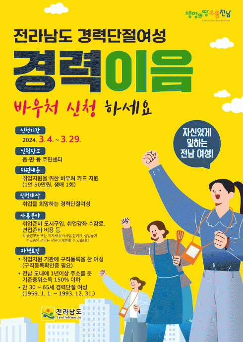 Áö¿ø ´ë»óÀº ½ÅûÀÏ ±âÁØ Àü¶ó³²µµ¿¡ 1³â ÀÌ»ó ÁÖ¼Ò¸¦ µÎ°í, Ãë¾÷ Áö¿ø±â°ü(¿©¼º»õ·ÎÀÏÇϱ⼾ÅÍ, °í¿ëº¹ÁöÇ÷¯½º¼¾ÅÍ µî)¿¡ ±¸Á÷ µî·ÏÇÑ ¸¸ 30¼¼ ÀÌ»ó 65¼¼ ÀÌÇÏ·Î, ÀçÃë¾÷À» Èñ¸ÁÇÏ´Â ÁßÀ§¼Òµæ 150% ÀÌÇÏ °æ·Â ´ÜÀý ¿©¼ºÀÌ´Ù.