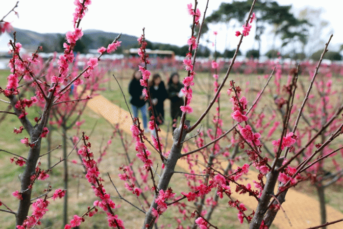 ÃàÁ¦Àå ³²¹® ÀÔ±¸¿¡ Á¶¼ºµÈ ¸ÅÈ ¹ç¿¡ ¸¸°³ÇÑ È«¸ÅȰ¡ °ü±¤°´ÀÇ ¹ß±æÀ» »ç·ÎÀâÀ¸¸é¼ º½ÀÇ ²ÉÀ» ÇÇ¿ì°í ÀÖ´Ù.