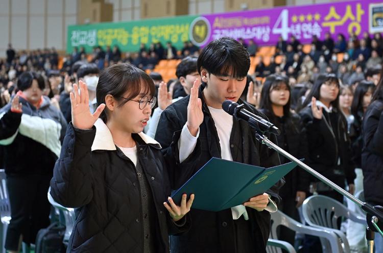 [ÅåÅå´º½º]È£³²´ëÇб³(ÃÑÀå ¹Ú»óö)°¡ 3¿ù 4ÀÏ ¿ÀÀü 11½Ã ±³³» ¹®ÈüÀ°°ü¿¡¼ ¡®2024Çг⵵ ÀÔÇнġ¯À» °®°í, ½ÅÀÔ»ýµéÀÇ ÈûÂù Ãâ¹ßÀ» ÃàÇÏÇß´Ù.