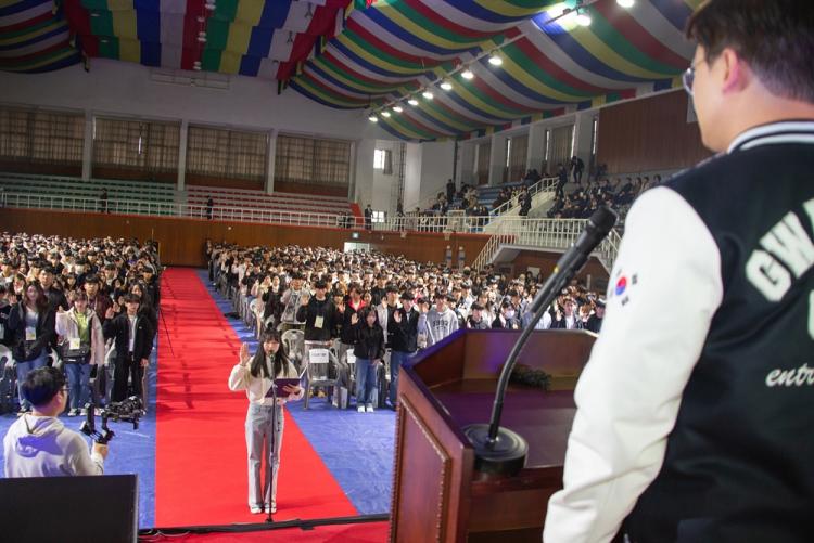 ÀÔÇÐ½Ä ÀÌÈÄ¿¡´Â ±èµ¿Áø ÃÑÀå°ú ±³¼ö, ÇлýµéÀÌ ÇÔ²² Âü¿©ÇÑ ¡®±×´ë¿¡°Ô(¹«Çѱ˵µ)¡¯ ¹êµå°ø¿¬À» ºñ·ÔÇØ ½ÅÀÔ»ý Àå±â ÀÚ¶û, ´í½º µ¿¾Æ¸® °ø¿¬ µî ½ÅÀÔ»ý ȯ¿µÇà»ç°¡ 1½Ã°£ µ¿¾È ´Ùä·Ó°Ô ÆîÃÄÁ³´Ù.