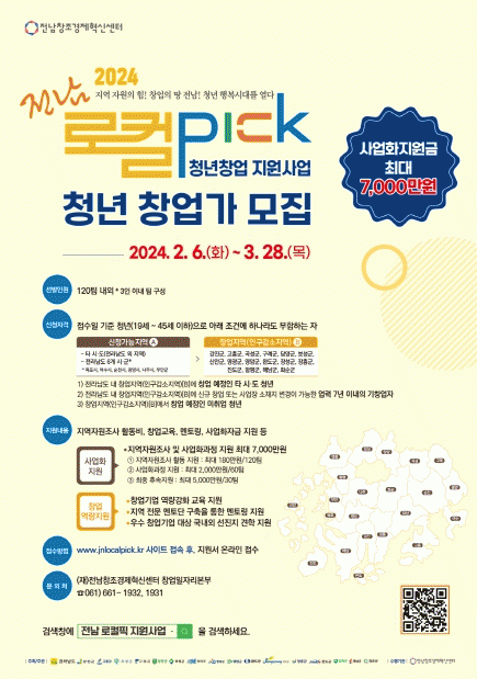 ¡®2024³â Àü³² ·ÎÄÃÇÈ(Local Pick) û³ââ¾÷ Áö¿ø »ç¾÷¡¯Àº µµ³» ÀÚ¿¬È¯°æ ¹× ¹®ÈÀû ÀÚ»êÀ» ±â¹ÝÀ¸·Î â¾÷ ¾ÆÀ̵ð¾î¸¦ ¸ð»öÇÏ°í ¼ºÀå ´Ü°èº° ¸ÂÃãÇü Áö¿øÀ¸·Î Ÿ ½Ã¡¤µµ û³âÀÇ µµ³» À¯ÀÔ°ú Áö¿ª Á¤ÂøÀ» À¯µµÇϱâ À§ÇØ Áö³ 2022³âºÎÅÍ Àα¸°¨¼Ò Áö¿ª 16°³ ±ºÀÇ Áö¿øÀ¸·Î ÃßÁøµÇ´Â »ç¾÷ÀÌ´Ù.