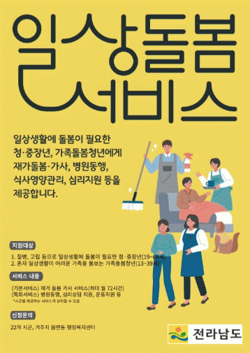 Àϻ󵹺½¼ºñ½º »ç¾÷Àº ¡ãÁúº´À̳ª ºÎ»ó, °í¸³ µîÀ¸·Î È¥ÀÚ¼´Â ÀÏ»ó»ýȰÀÌ ¾î·Á¿î û¡¤ÁßÀå³â°ú ¡ãÁúº´¡¤Á¤½ÅÁúȯ µîÀ¸·Î È¥ÀÚ ÀÏ»ó»ýȰÀÌ ¾î·Á¿î °¡Á·À» µ¹º¸´Â °¡Á·µ¹º½Ã»³â(û¼Ò³â Æ÷ÇÔ)À» ´ë»óÀ¸·Î ÀÌ·ïÁø´Ù. µ¹º½¡¤°¡»ç, º´¿ø µ¿Çà, ½É¸® Áö¿ø µî ¼ºñ½º·Î ÀÏ»ó»ýȰÀÇ ºÒÆí°ú ¾î·Á¿òÀ» ÇØ¼ÒÇÏ´Â »ç¾÷ÀÌ´Ù.