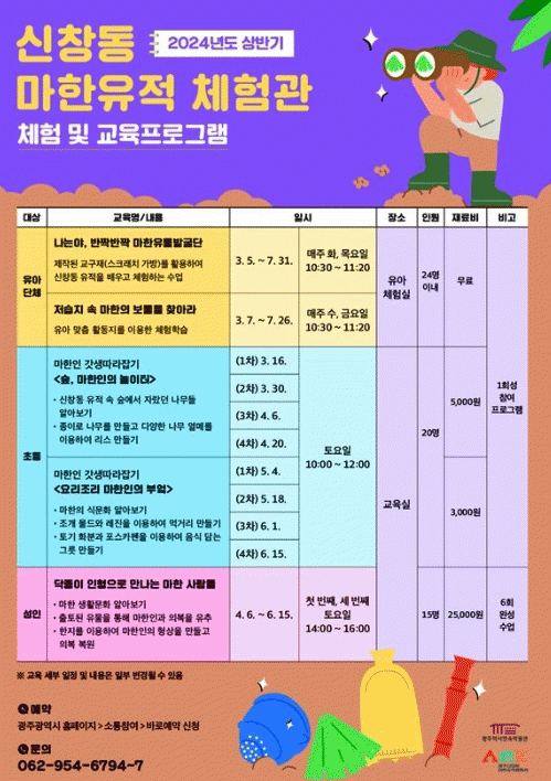 ÀÌ ÇÁ·Î±×·¥Àº 4¿ù6ÀϺÎÅÍ 6¿ù15ÀϱîÁö ù ¹øÂ°, ¼¼ ¹øÂ° Åä¿äÀÏ(¿ÀÈÄ 2½Ã ºÎÅÍ 4½Ã)¿¡ ½Å⵿ À¯Àû¿¡¼ º¸ÀÌ´Â ¸¶ÇÑÀÎÀÇ »ýȰ¹®È¸¦ ¾Ë¾Æº¸°í, À¯ÃßÇÑ ¸¶ÇÑÀÎÀÇ ÀǺ¹À» ´ÚÁ¾ÀÌ ÀÎÇüÀ» ÅëÇØ º¹¿øÇغ¸´Â üÇèÀ» ÇÑ´Ù.