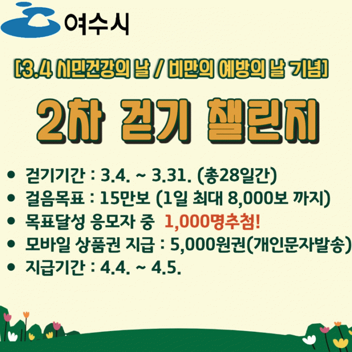 ¿©¼ö½Ã°¡ 3¿ù ½Ã¹Î °Ç°ÀÇ ³¯°ú ¼¼°èºñ¸¸¿¹¹æÀÇ ³¯À» ¸Â¾Æ ºñ´ë¸é °È±â 縰Áö¸¦ ¿î¿µÇÑ´Ù.