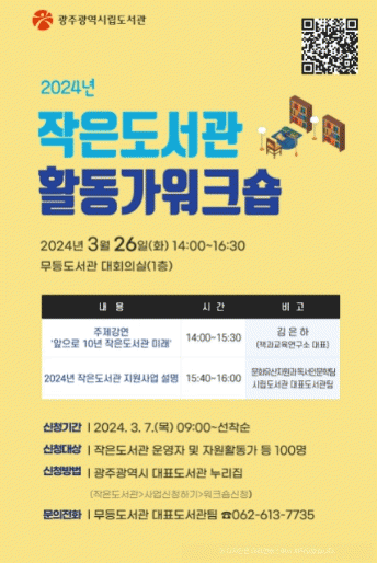 ±¤Áֽø³µµ¼°üÀº ÀÛÀºµµ¼°ü Ȱ¼ºÈ¸¦ À§ÇØ ½Ã¹ÎÂü¿© µµ¼°üÇб³, µ¶¼ÀÇ´Þ?¹®ÈÀÇ ´Þ Çà»ç Áö¿ø, ¹Ì¼úÀÛǰ ¼øÈ¸ Àü½Ã, ÁÖÁ¦º° üÇè Áö¿ø µî ´Ù¾çÇÑ »ç¾÷À» ¿î¿µÇϰí ÀÖ´Ù.
