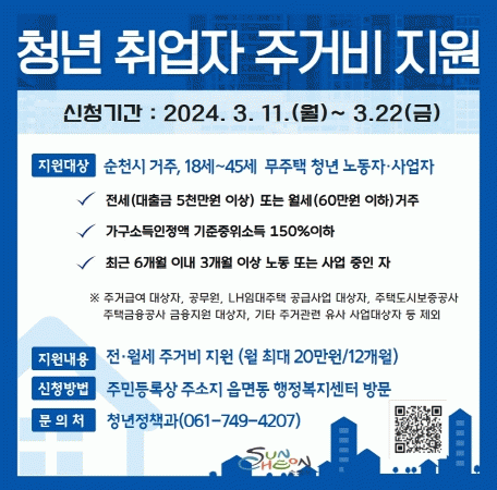 û³â Ãë¾÷ÀÚ Áְźñ Áö¿ø»ç¾÷Àº ¼øÃµ½Ã¿¡ °ÅÁÖÇϸç ÀÏÇϴ û³âµé¿¡°Ô Áְźñ(Àü¡¤¿ù¼¼)¸¦ ¿ù 20¸¸¿ø¾¿ ÃÖ´ë 1³â°£ Áö¿øÇÏ´Â »ç¾÷ÀÌ´Ù.