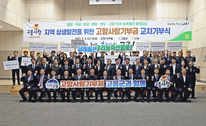 À̹ø ±³Â÷ ±âºÎ´Â Áö³ÇØ¿¡ ÀÌ¾î ±¤¾ç¡¤°î¼º¡¤º¸¼º¡¤¿µ¾Ï¡¤¿Ïµµ¡¤°íÈï 6°³ Áö¿ªÀÇ ³ó¡¤ÃàÇù °ü°èÀÚ 1,000¿© ¸íÀÌ µ¿ÂüÇØ °íÇâ»ç¶û±âºÎÁ¦ÀÇ ¼º°øÀûÀÎ ¾ÈÂø°ú È®»êÀ» À§ÇØ ¶æÀ» ¸ð¾Æ ÃÑ¾× 1¾ï ¿ø ±Ô¸ðÀÇ °íÇâ»ç¶û ±âºÎ±ÝÀ» »óÈ£ Áö¿ª¿¡ ±³Â÷ ±âºÎÇß´Ù.